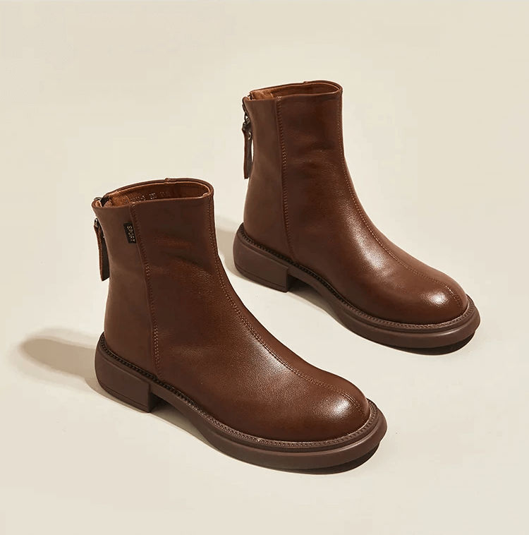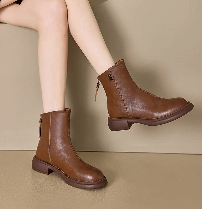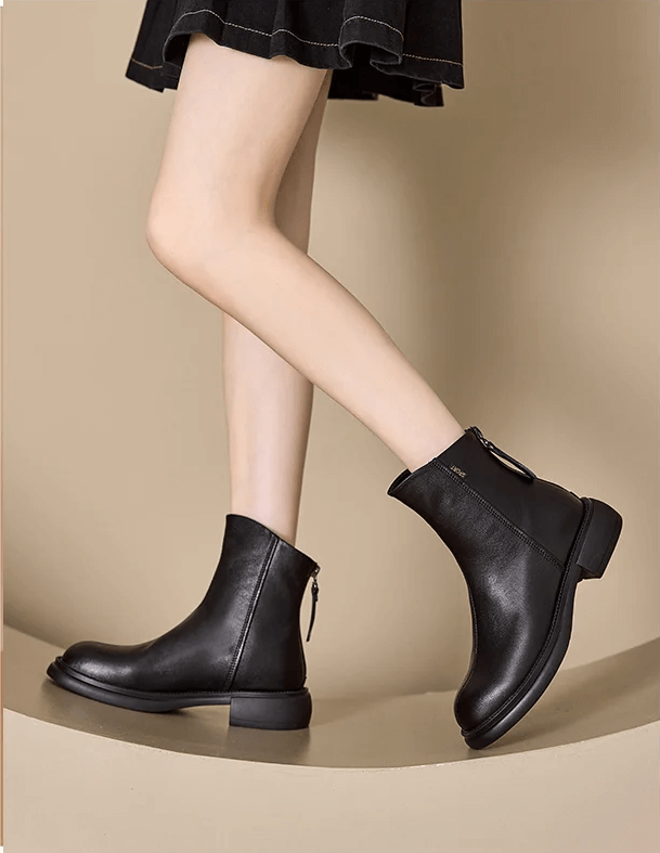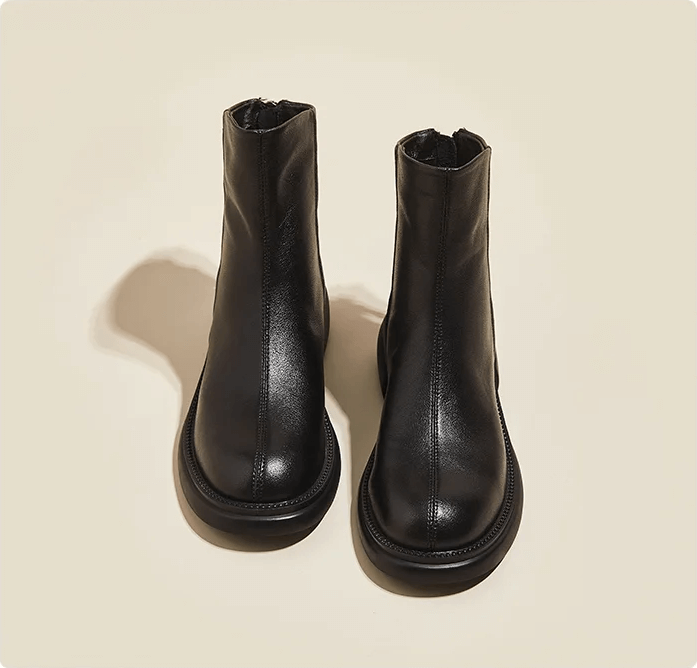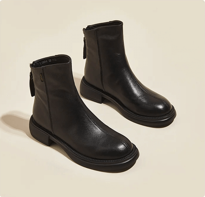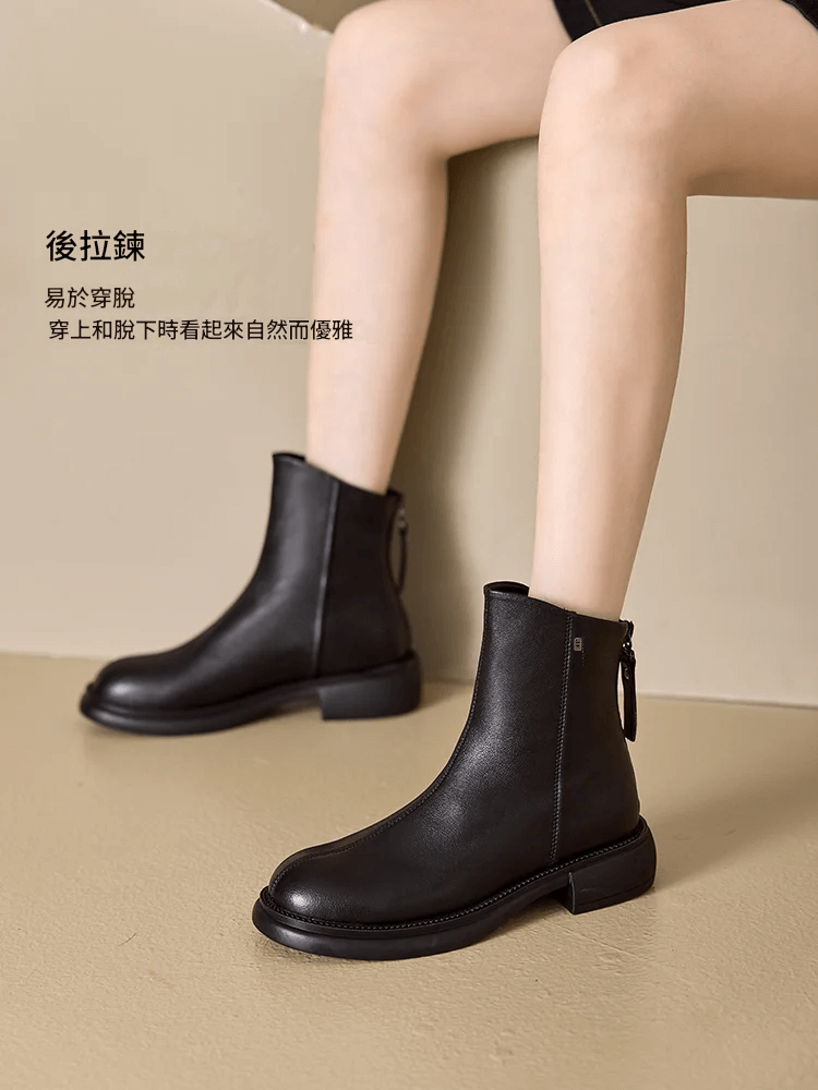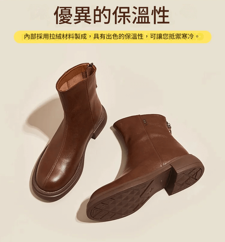 時尚軟皮短靴,軟皮布料,人體工程鞋底,貼合足弓,分散壓力,防滑耐磨大底