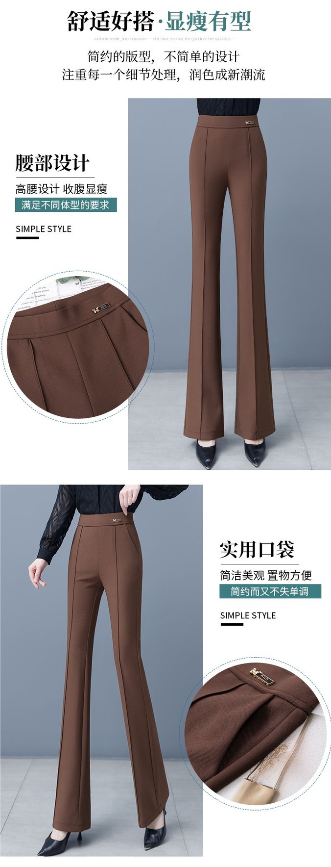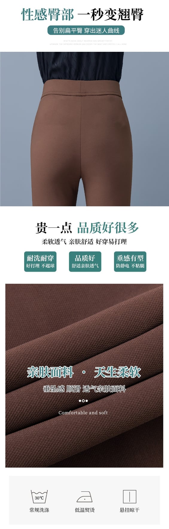 高腰設計提升腰線,顯瘦又舒適,貼合身形,展現修長美腿,氣質女人必備