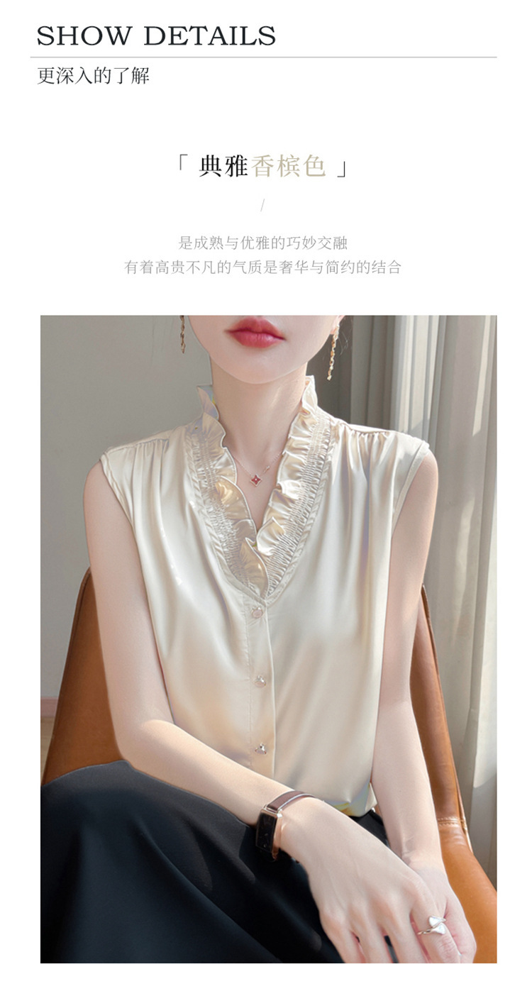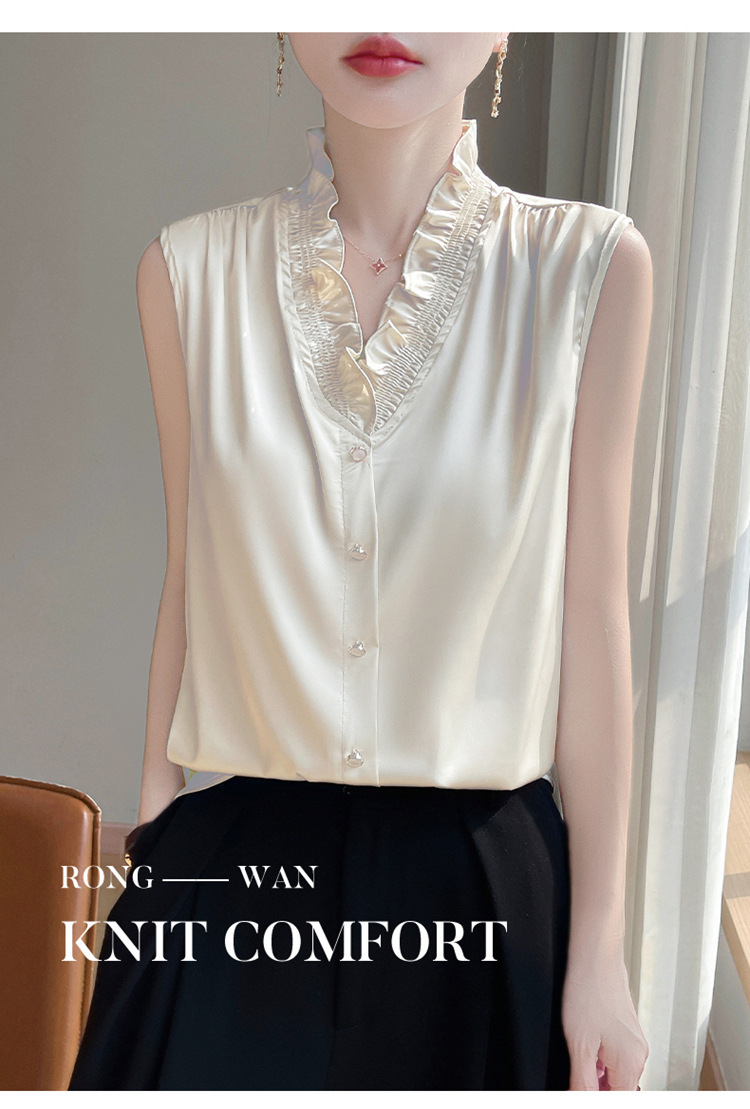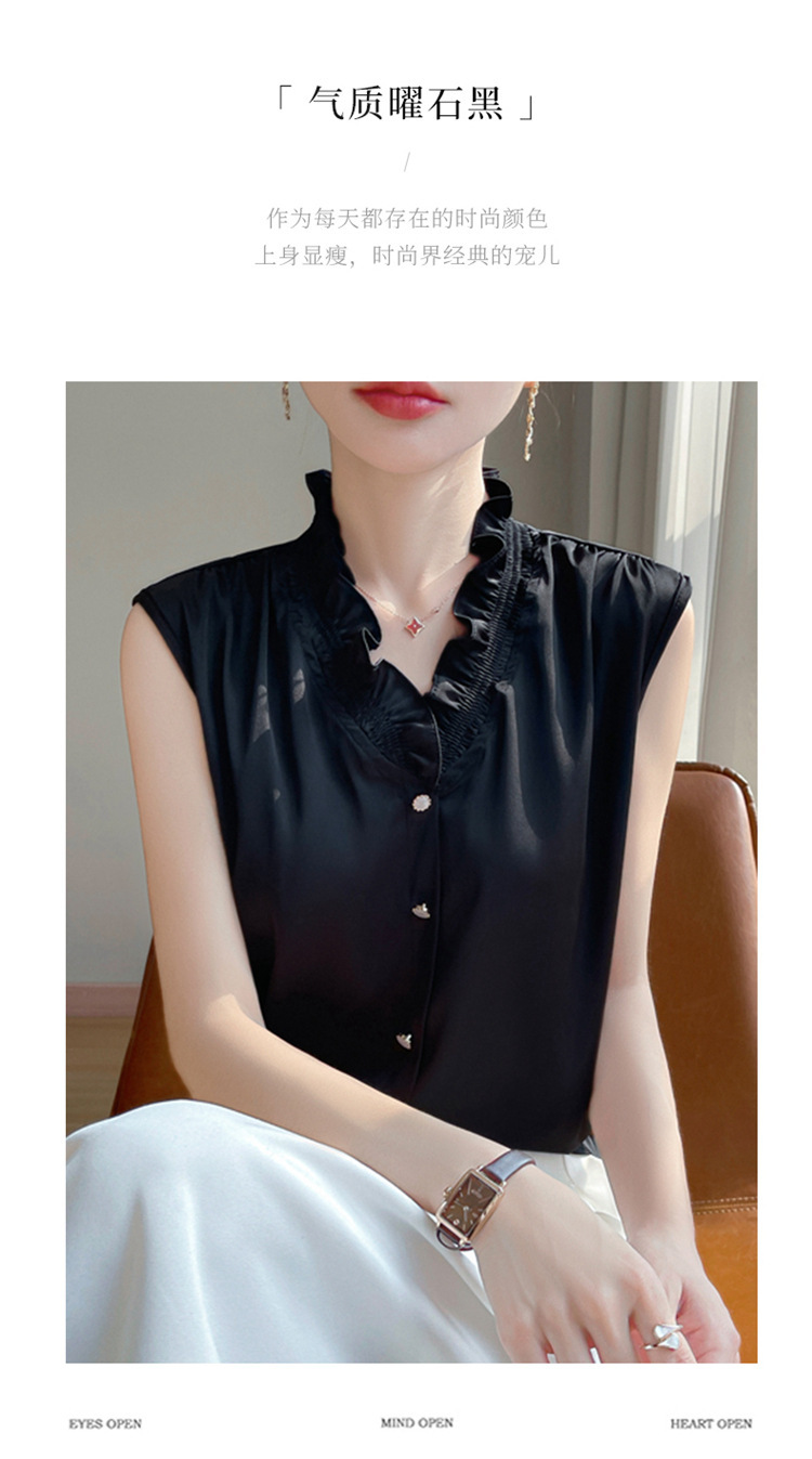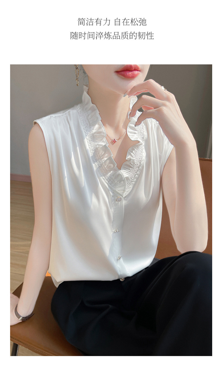 木耳花邊V領背心,柔軟飄逸,緞面如絲,輕盈如羽,知性時髦,吸汗透氣性好,好版型不挑人