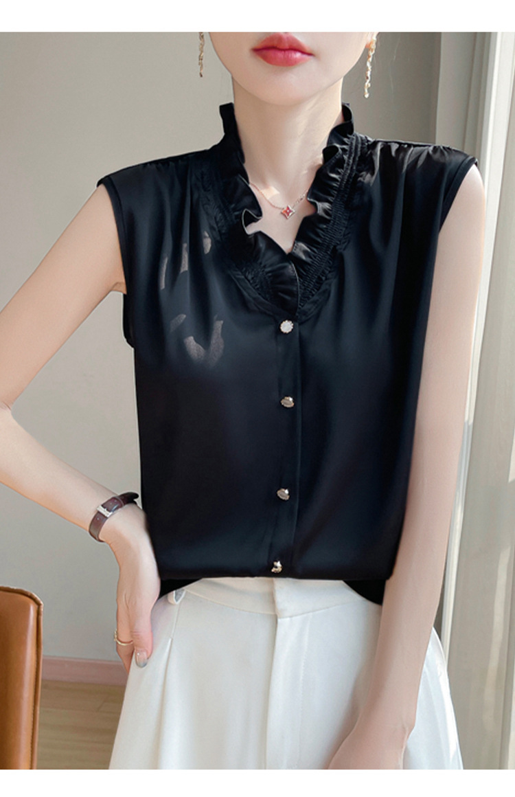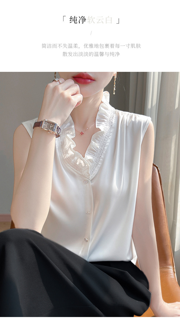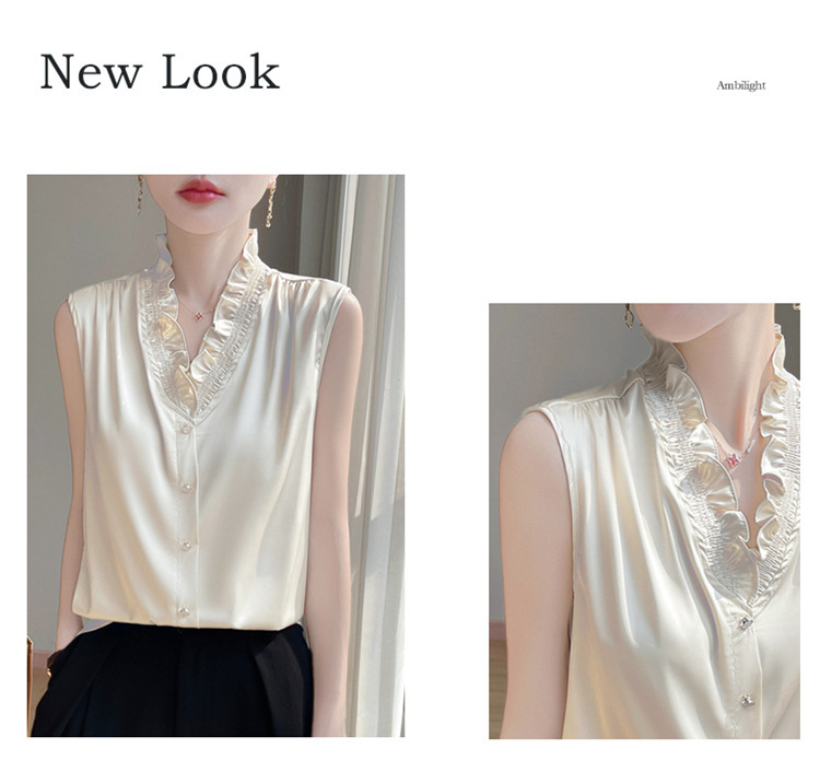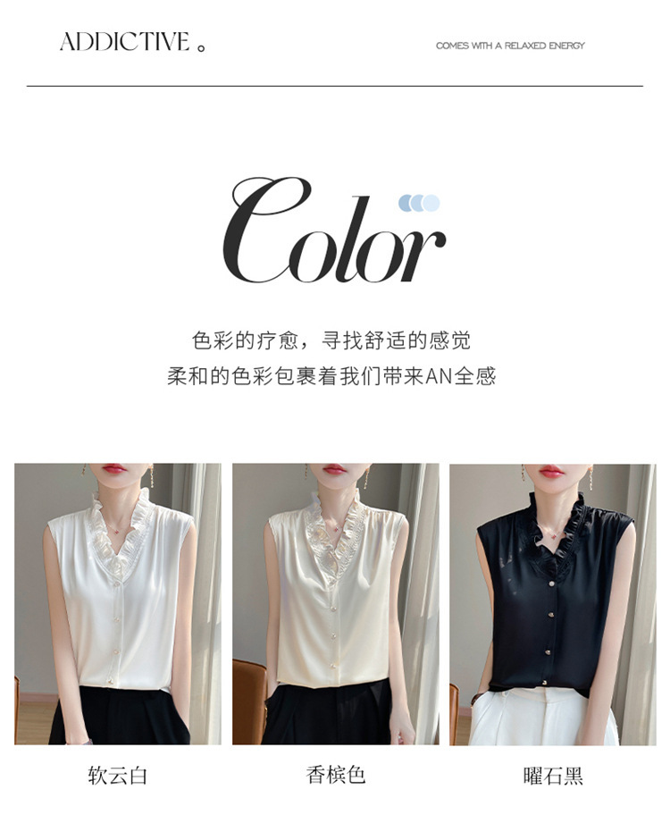 木耳花邊V領背心,柔軟飄逸,緞面如絲,輕盈如羽,知性時髦,吸汗透氣性好,好版型不挑人