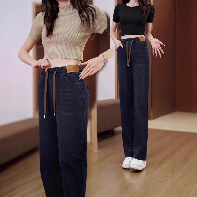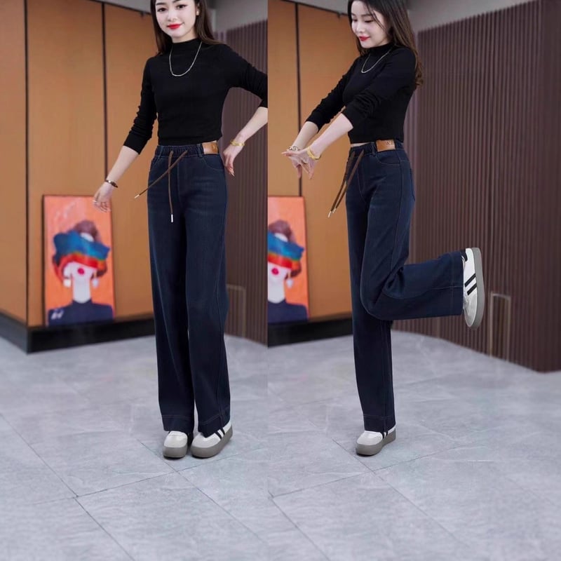 軟牛仔直筒褲,高腰設計,褲型垂順,舒適柔軟面料,觸感細膩,不挑體型,立顯時尚氣質